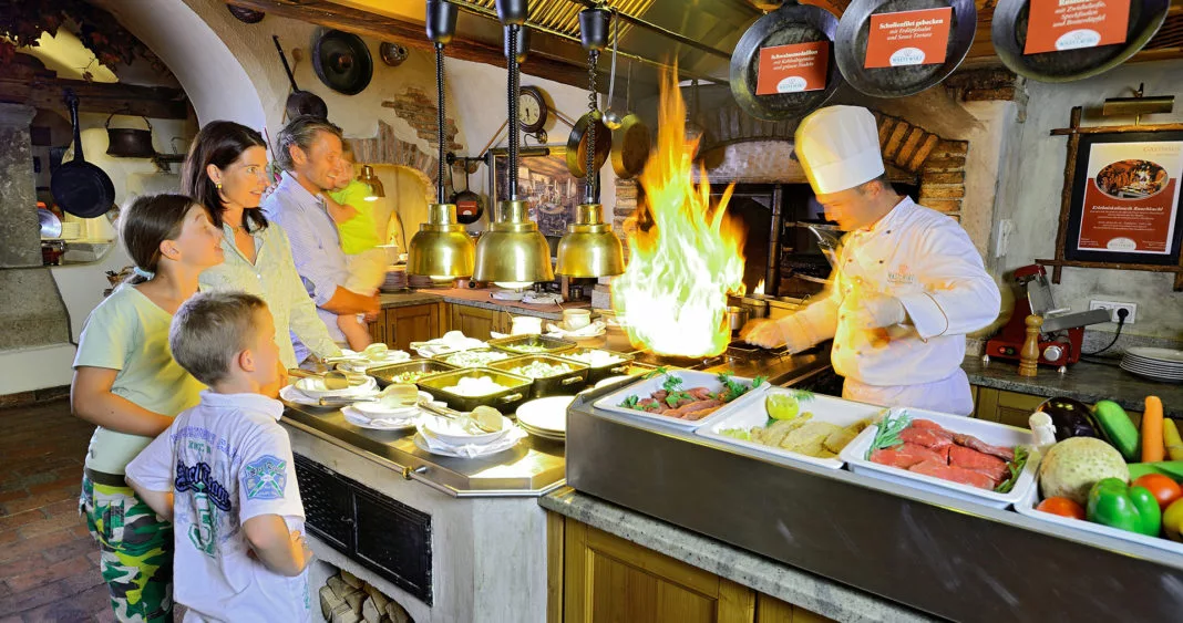 Die „Rauchkuchl“ im Hotel & Restaurant Wastlwirt**** ist eine ganz besondere Küche, die man heute nur mehr selten findet. Über dem offenen Feuer werden unterschiedlichste Spezialitäten der Genussregion Lungau im UNESCO zertifizierten Biosphärenpark Salzburger Lungau, aber auch internationale Schmankerl, direkt vor den Augen der Gäste zubereitet. Schauen Sie unseren Köchen über die Schulter und wählen Sie aus einem weitreichenden und täglich wechselnden Angebot von Vorspeisen, Suppen, Hauptspeisen und Desserts und seien Sie Ihr eigener kulinarischer Regisseur.